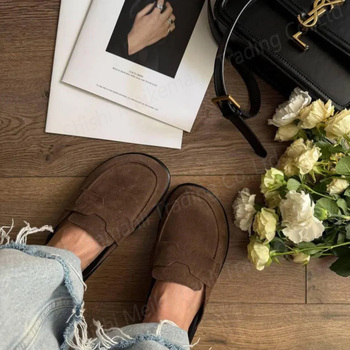 התאמה אישית של נשים נעלי קבק שטוחות סגור בוהן צבע אחיד עור זמש נשים חצי מעגל נעלי הגינה נעלי קבק